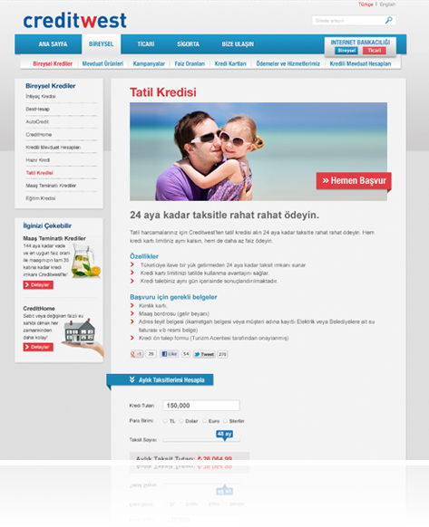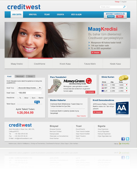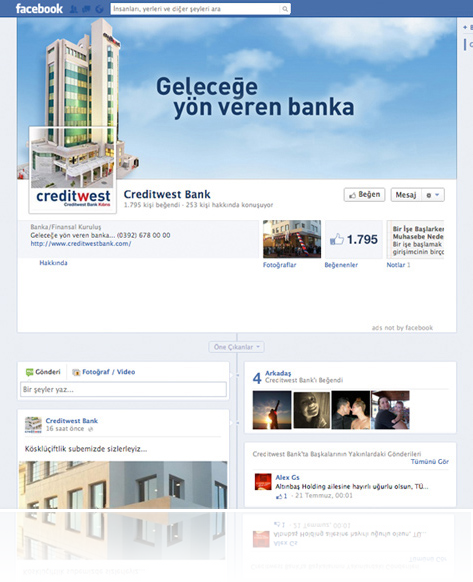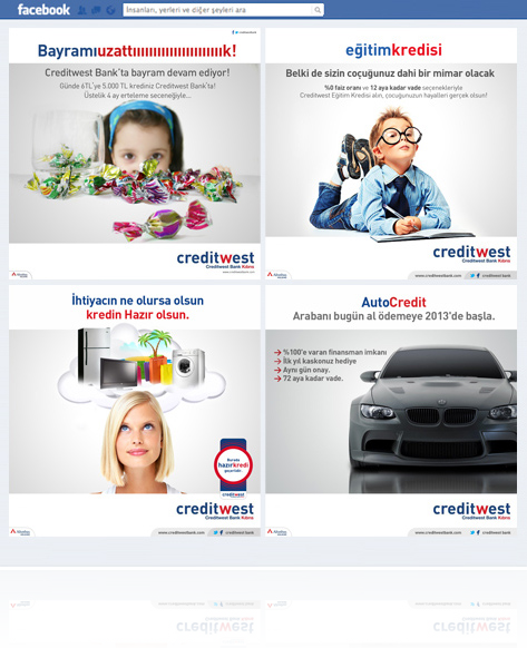 Creditwest Bank, müşterilerine her zaman en iyi hizmeti sunmayı, kaliteyi ve güvenirliliği ön planda tutmayı kendine ilke edinmiştir. Bugün, bir internet sitesi ile başlayan çalışmalarımıza Sosyal Medya, iletişim çalışmalarını da katarak yola birlikte devam ediyoruz.