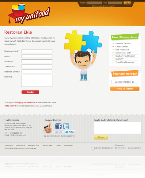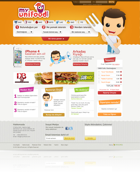 Myunifood.com! Myunifood.com bize hayalini anlattı, biz de yaratıcı ekibimiz ile o hayali gerçeğe dönüştürdük. Tamamen öğrencilere yönelik renkli ve farklı tarzıyla Myunifood.com Innovia Digital farkıyla yayında!